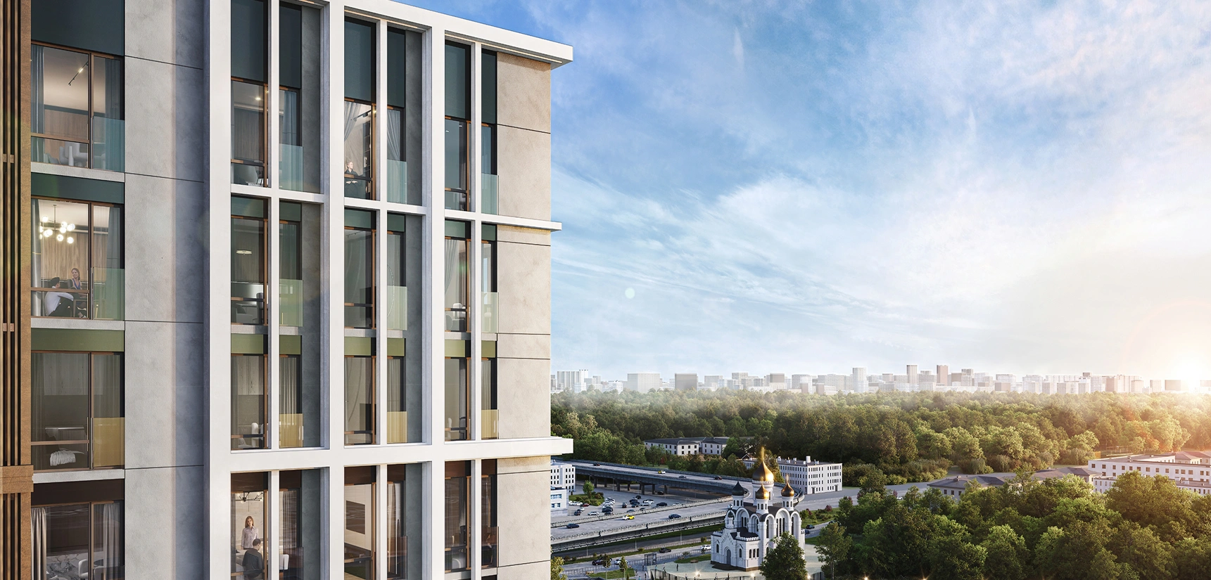 Расположен 18-этажный дом в районе с отличной транспортной доступностью, развитой инфраструктурой и лесопарковыми зонами для прогулок и спорта. Обладает самым современным функциональным пространством: дизайнерское лобби, подземный паркинг, уютные зоны для отдыха, места для хранения велосипедов и колясок, а также благоустроенные площадки для детей и разнообразная инфраструктура на первых этажах.